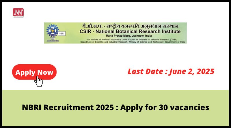 NBRI Recruitment 2025 : Apply for 30 vacancies