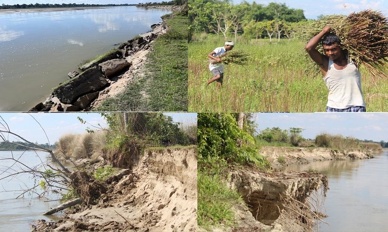 This year, farmers Dhunti Das (27) and Bhaskar Rajkhowa (32) lost four out of five bighas of sesame crop along the left bank before harvest due to erosion.