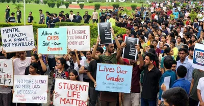 Over 3000 students gathered in front of the administrative block, chanting slogans like "We want justice," "Student life matters," and "Mental health is a right, not a privilege." They held placards highlighting their concerns about the institute's approach to student welfare.