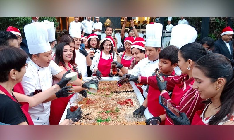 The celebrations began with a lavish brunch featuring an array of global and local delicacies, followed by the traditional cake-mixing ceremony, where guests enthusiastically joined the culinary team in blending dry fruits, nuts, candied peels, and aromatic spices, a symbolic ritual celebrating joy, abundance, and togetherness.
