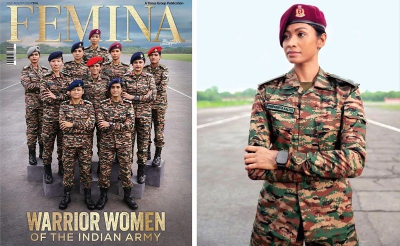 Femina India’s July-August 2025 edition features a story titled In the Line of Duty, which highlights ten women officers of the Indian Army.
