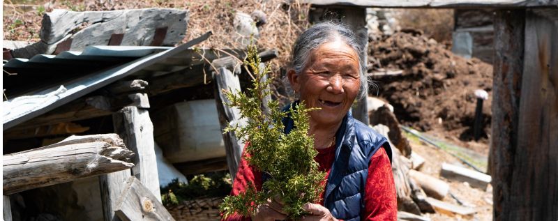 Residents of Manang in Nepal need to hike long distances to collect juniper leaves. Image by Durga Rana Magar.
