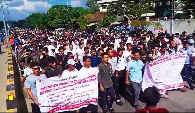 Imphal: Hundreds of students defied an indefinite curfew to protest the killings of two Meitei students in Imphal, Manipur, on Thursday.