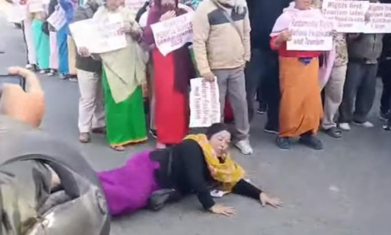 For the first time, the protesting IDPs—amid tight security—cried for help in public spaces, lying down on crowded streets near the Raj Bhavan and the historic Kangla Fort in Imphal.
