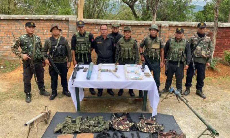 When the suspected Kuki-Zo activists sensed the approaching troops, they fled the scene, leaving behind various types of arms, explosives, and ammunition. During follow-up actions, the security forces dismantled the structure used for illegal activities.