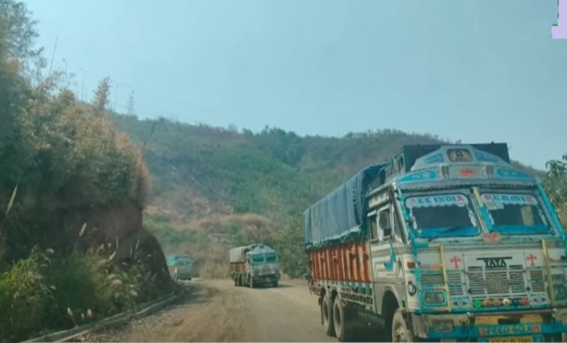 On Thursday, 104 commercial vehicles transporting petroleum products, perishable goods, and other essentials reached Imphal from Silchar, while 122 trucks departed Imphal for Silchar.
