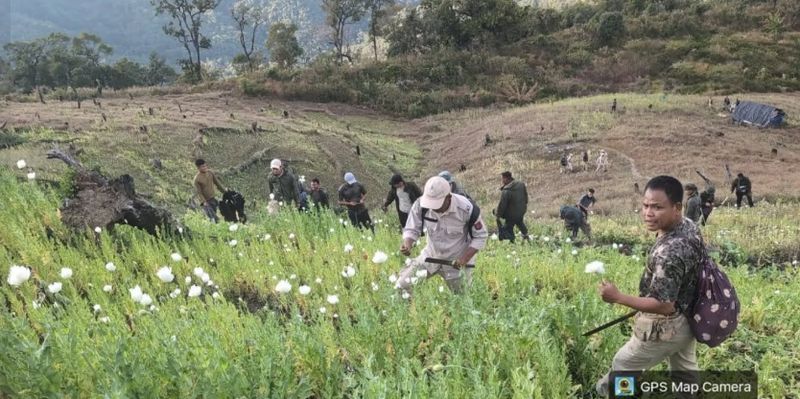 The operation follows a similar crackdown conducted on January 16, 2026, when a combined team of security forces, the Forest Department and the Executive Magistrate destroyed around 10 acres of illegal poppy cultivation in the Suangkong Hill range under Behiang Police Station in Churachandpur district.