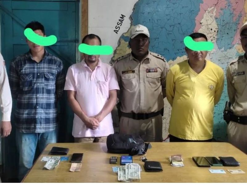 A police official said that they were arrested with extorted money, a vehicle, and some incriminating documents during a cordon and search operation in a secluded place in Imphal West, Manipur.