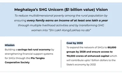 The initiative aligns with Meghalaya’s SHG Unicorn ($1 billion) Vision, which aims to eliminate multidimensional poverty by ensuring that every family in the state earns at least Rs 1 lakh additional income per year through multiple livelihood activities. MSRLS aims to expand the SHG network to 80,000 groups by 2028, unlocking Rs 8,000 crores in enhanced capital and contributing $1 billion to Meghalaya’s economy by 2032.