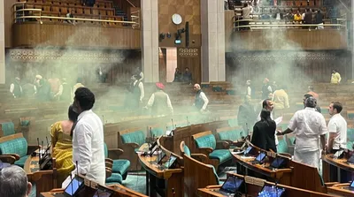 Major security breach in Parliament: Two men jump into Lok Sabha, release yellow smoke