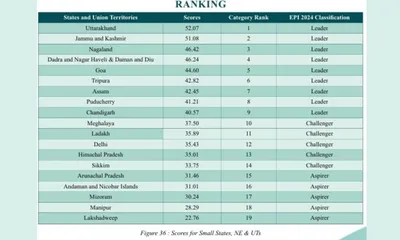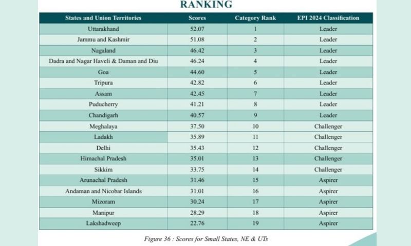 Overall, Nagaland is ranked 18th in the country, followed by Tripura in 22nd position.