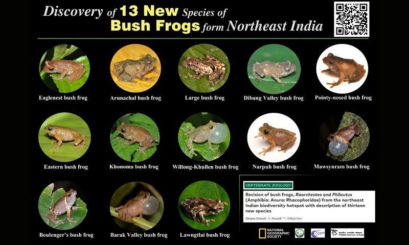 Guwahati: In one of the most significant zoological discoveries in recent years, scientists from the Wildlife Institute of India (WII), Dehradun, have unveiled 13 new species of bush frogs from Northeast India — the highest number of vertebrate species described in a single scientific publication in over a decade in the country.