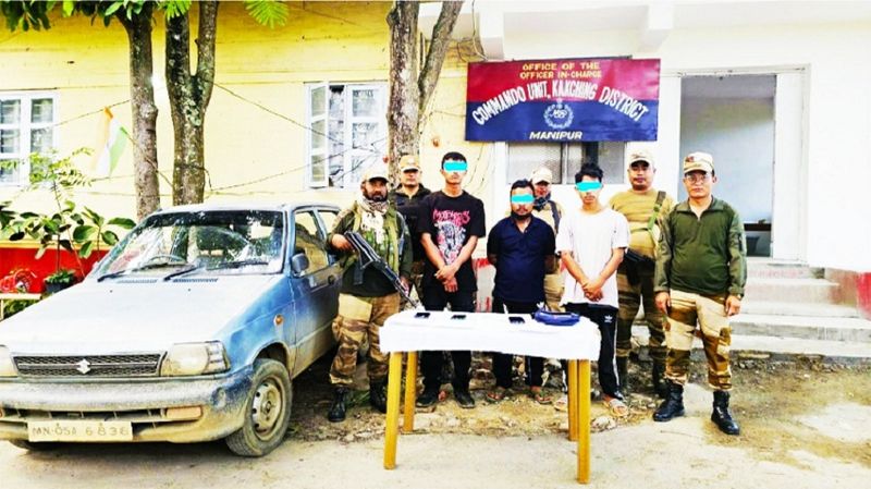 The arrests and seizures of different items were made in an operation conducted based on a coordinated intelligence input of the Kakching district police and commandos of the Manipur police at around 7 am on Friday.